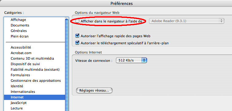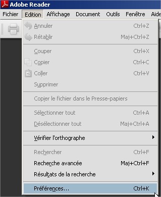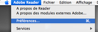 Sous Mac OS, allez dans le menu "Acrobat reader" puis "Préférences".