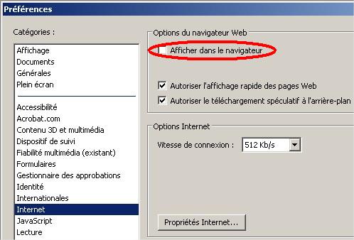 Les fichiers PDF ne s'ouvrent pas sur votre navigateur? Le téléchargement ne se fait pas complètement? Pour pallier à ce problème, il suffit de décocher une option dans le logiciel Acrobat Reader. Cela aura pour but de ne pas utiliser le navigateur mais le logiciel Acrobat reader pour la visualisation des fichiers. Le temps de chargement sera par contre un peu plus long. Suivez les copies écran plus bas pour faire la manipulation.